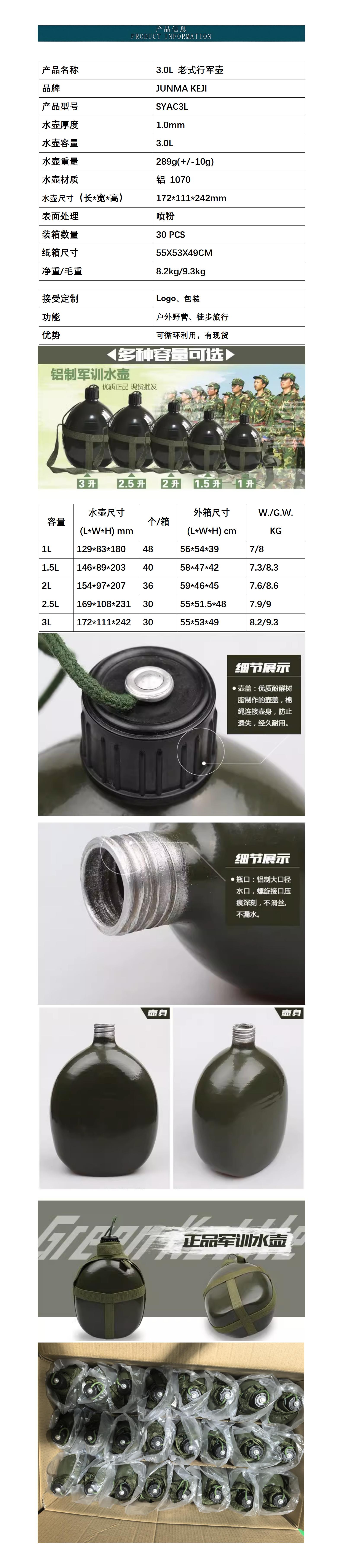 3.0L 老式行军水壶
